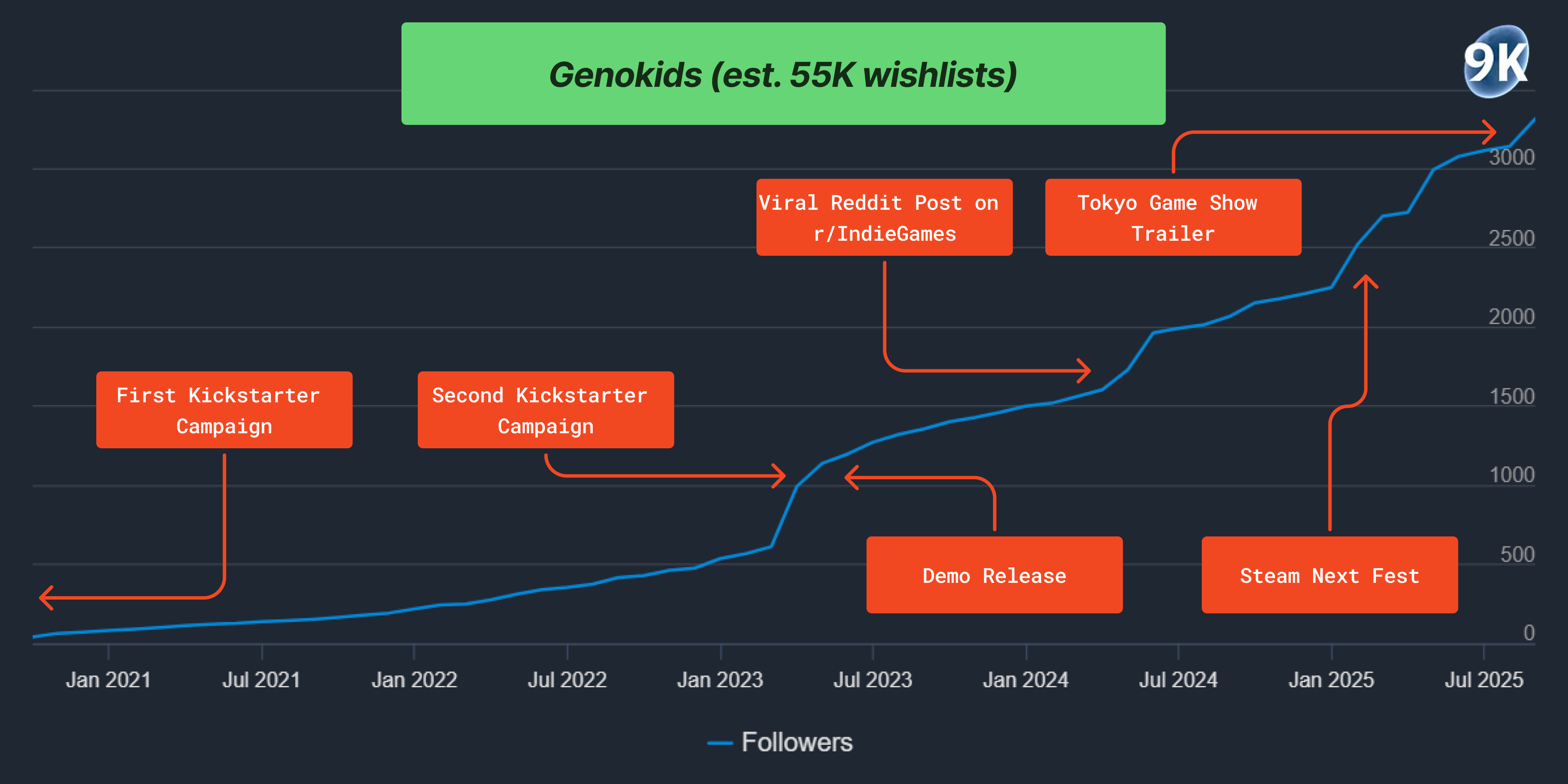 Nukefist, the two person team behind the upcoming Kingdom Hearts-inspired hack & slash, Genokids (releasing October 2nd with 55K est. wishlists), are nothing if not persistent. Their press release details that they started development in 2018/19. A year and a half later they launched a kickstarter campaign that ultimately failed to reach its goal of $35K. They continued to work on the game while contributing to a “fantasy adventure about an aspiring witch” called Mika and The Witch’s Mountain, which was co-developed with Chibig, the team behind Summer in Mara, and was released earlier this year with an estimated gross revenue of $385K. Nukefist then ran an entirely new Kickstarter campaign for Genokids in April 2023 to fund the completion of the game with their goal set again at $35K. This campaign exceeded their expectations bringing in $100K with over 1,500 backers. The additional funds allowed them to reach all of their stretch goals including adding voice acting and a Nintendo Switch version.
